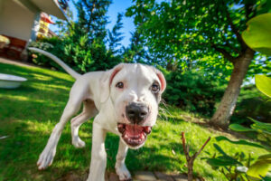 Sometimes, however, there really is a precipitating event, and the dog was totally fine before that happened. I’m reminded of a young dog who had been housebroken, but suddenly began to refuse to go out in the backyard and would urinate in the home as soon as she had a chance to do so unobserved. The veterinary exam had shown nothing unusual, the diet had not been changed, work schedules were the same, there had been no new additions or losses to the household, etc. Watching the dog as the client and I talked, I noticed that every tiny sound outside the consultation room was registering with the dog. Her ears were moving just about nonstop as she tried to track all the sounds of a busy veterinary clinic. Loud noises made her cringe, though she recovered in a few minutes. I asked about sounds that the dog might be exposed to in the backyard.