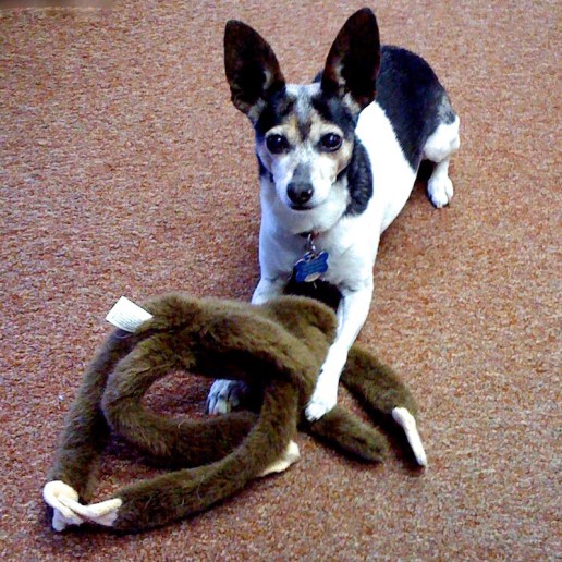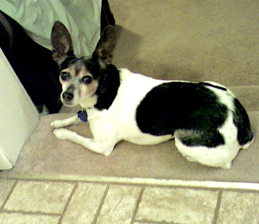 That floor was slippery, and I kept her nails longer than I would nowadays. If she had lain all the way down on it, she would have had to scrabble to get up. Plus, she likely didn’t care for the feeling of the cool, smooth floor on her little bare belly. This seems to be pretty common in small dogs with short hair. Cricket hovered even higher over the chilly concrete floor in my den.