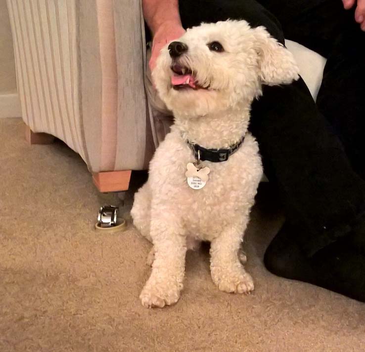 It’s really strange how it all started. My clients have had the little Bichon Frise for just a few weeks – he came over from Ireland with an unknown past – and the young lady quite unwittingly bought him a laser light thinking that he would enjoy chasing it.