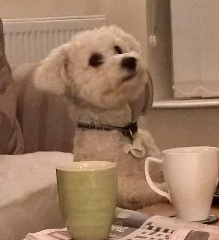 It’s really strange how it all started. My clients have had the little Bichon Frise for just a few weeks – he came over from Ireland with an unknown past – and the young lady quite unwittingly bought him a laser light thinking that he would enjoy chasing it.