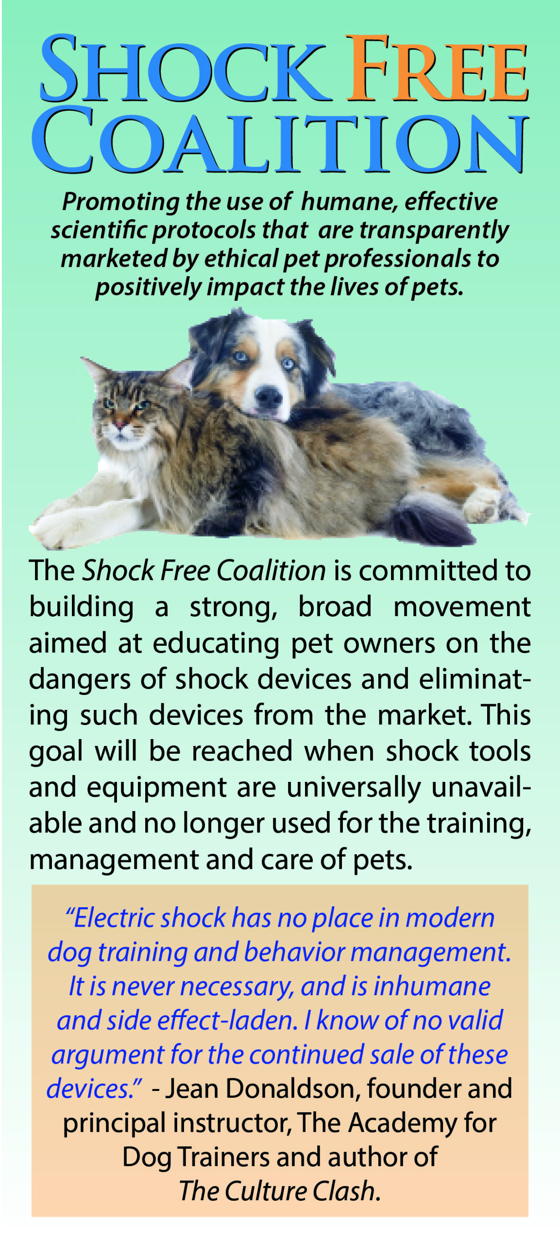 Join the Shock-FreeCoalition to make the use of electric shock in animal training a thing of the past.