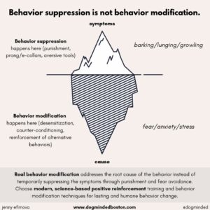 The year is 2019, folks. Let’s get real. Don’t mistake behavior suppression for behavior modification. If your dog needs help, hire a reputable professional who understands the science of behavior and has the education, skillset, and experience (yes, those matter!) to create real, lasting, and humane behavior change.