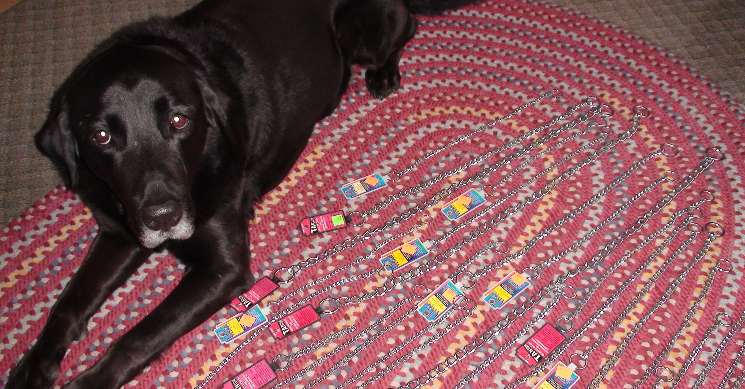 Recently I persuaded a local pet supply store owner to sell me all his choke collars (at cost) and refrain from restocking them, in return for recommendations for safe body harnesses such as Perfect Fit and Balance. He was persuaded by data I presented to him about the pathology of choke collars.