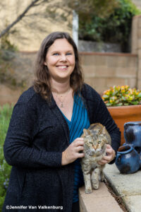 Jennifer Van Valkenburg grew up across from a farm in rural Massachusetts. She has always had a passion for helping animals of all shapes and sizes. She learned quickly through helping her own overweight cat, Jalapeño, become healthier that training cats was not only fun, it was easy! In 2014, she became a certified feline training and behavior specialist through the Animal Behavior Institute, and she started a feline behavior consulting business to help create a better understanding between cats and their humans. She is passionate about cooperative care for companion animals and giving pets choices to lead to a better quality of life. She currently lives in greater Los Angeles with her husband, son, and two cats.