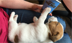 We’re just back from a 10km walk followed by a sandwich in the sun. A good brisk march with plenty of variation from sniffing and fetching, meeting and greeting dogs and even swimming. Despite this apparent morning of stimulation, after we arrived home, Jellybean immediately tried to engage me in play. When that didn’t work, he went and got his stag bar, which he’s been chomping on for about 10 minutes. I know that quite soon he will crash and sleep for hours.