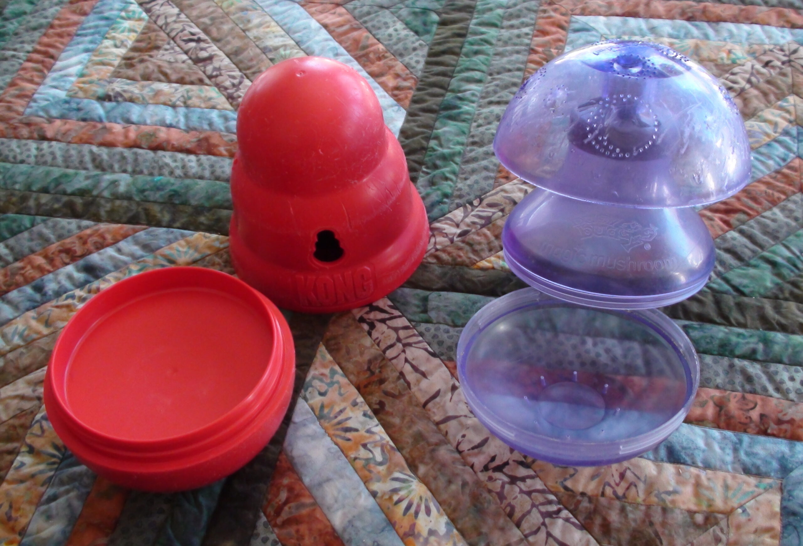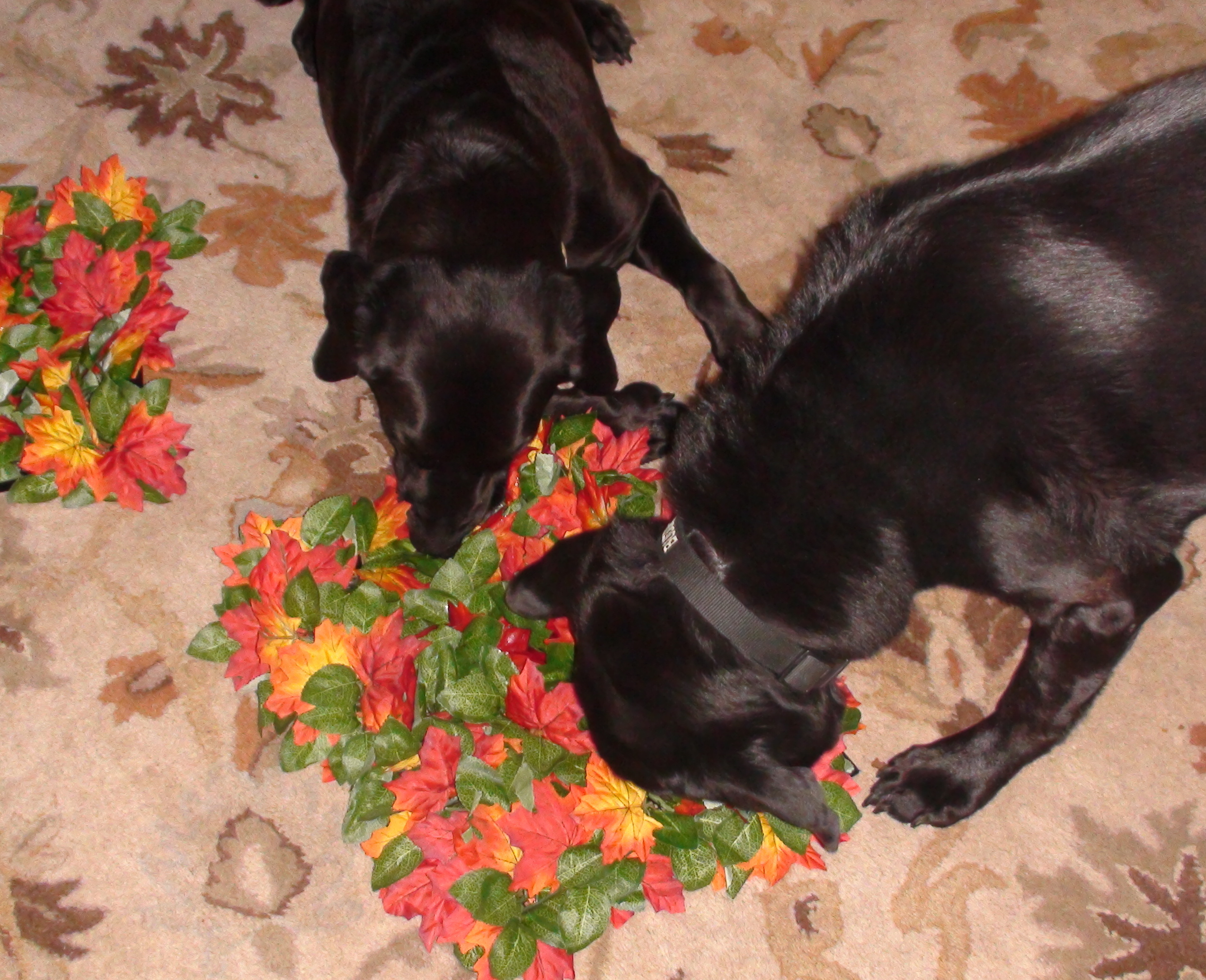 Similarly, they play Find It when I toss a handful of food into the grass and bring them out to use their olfactory system and discover every little tidbit. This game is a focused activity using sense of smell, seeking behavior and their (problem-solving) frontal cortex. It has a calming effect in most dogs.