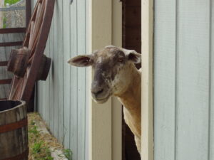 One of my favorite memories is sitting beneath a lean-to during a spring shower, with Charlie on my right and the lambs on my left. Today the sheep run to me whenever I appear and soak up their back rubs while licking their lips in delight. Our trusting relationship enables them to undergo annual shearing and veterinary care with relative ease in my presence.