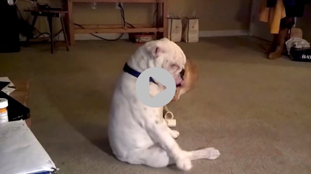 - The bulldog walked in, paused a few seconds, then started rocking on his butt, perhaps to scratch his butt or as some kind of stereotypy.