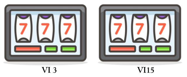 The matching law applies to reinforcer value, too. If the schedules were the same as described above but Machine 1 paid out only $50 and Machine 2 paid out $1,000, you might still pull the lever for Machine 1 more times. But you would be intent on not missing the opportunity for Machine 2. The ratio would skew towards Machine 2 as you pulled its lever more often.