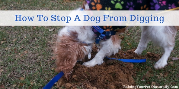 How to stop a dog from digging in the yard starts with active supervision outside. I know, I know—you feel since you have a great big fenced yard that your dog should have the freedom to roam and wander as he pleases. But, if your dog is doing something in the yard you are not a fan of, such as digging, he needs to be entertained while outside and politely re-directed to a more appropriate activity. Read this article on why I’m not a fan of unsupervised yard time.