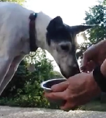 Sometimes Zip has difficulty grasping the food from the bowl as he’s missing some front teeth, so I will spoon feed him a portion of his meal as I do in this video clip. How much of this reluctance to eat alone is because Zip enjoys the attention from me is up for discussion, but I truly believe that mealtimes are an excellent opportunity to bond with your senior dog just as it can be quality family time for humans.