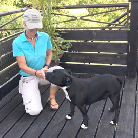 Time for action! When you think your dog has grasped the nose touch concept, start putting it into practice! Start when your dog is least excited and there is least competition for his active engagement. As soon as your dog is about to leap, offer your flat hand low down, say ‘touch’ and reward (praise, treats etc.). Progress to using the new trick in lots of varying situations but, should your dog actually jump, completely ignore him, stand rock steady and wait for his feet to hit the ground again, then ask for ‘touch’. In such a scenario, your dog receives no reinforcement (which may include direct eye contact, physical contact from pushing away, voice contact etc., depending on the dog) but receives lots of praise for doing what you want him to do, i.e. greet nicely and in a settled manner via providing you with ‘touch’. The great thing here is that dogs are super fast to grasp the concept of, ‘Hmmm…I don’t get what I want by doing that BUT I do get what I want by doing this!’ So work on this to your advantage and you will have a predictable and desirable means of dog-people greeting.
