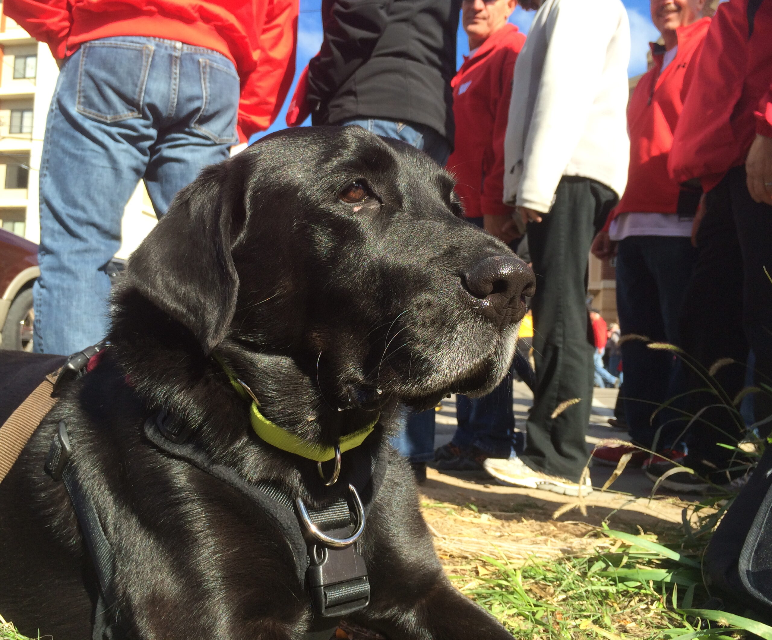 On October 3rd we spent 90 minutes in downtown Madison (WI) as 70,000 football fans streamed into the stadium to watch the Wisconsin Badgers and Iowa Buckeyes. Buddha and I picked a hectic intersection and played our full range of training games, with breaks for belly rubs and petting from passing fans.