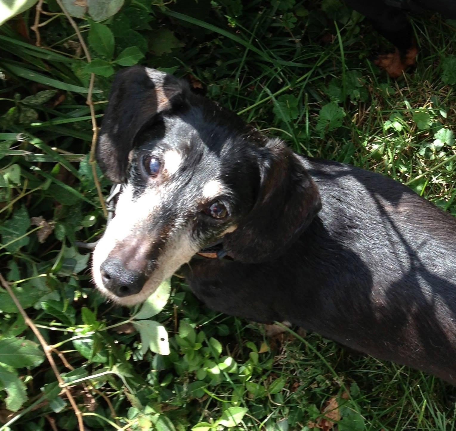 I had no idea then that seven weeks later I would be euthanizing my 12-year-old dachshund Ginger. Five months earlier, Ginger had been diagnosed with a sinus tumor. Her only symptom was chronic reverse sneezing initially thought to be allergy related. Later Ginger’s bloody nose caused my vet to re-evaluate what actually was going on. Adenocarcinoma is not as forgiving as lymphoma, but Ginger survived those months on Atopica alternated with prednisone. When the tumor penetrated her brain causing a stroke, we were done. But up until that occurred, Ginger had been well.