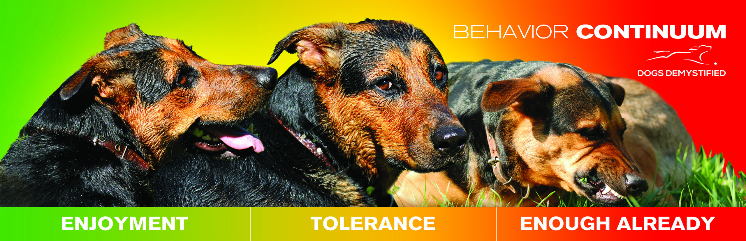 Many people divide dog behavior into two categories: aggressive and non-aggressive. That is logical enough, but there are plenty of non-aggressive behaviors that indicate that a dog could still do with some help. If we remain unaware of this and do not try to modify the relevant behavior, we run the risk that a dog could hit his limit and show aggression “without warning”.