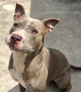 On that July day, I had been with my current company for about six months. I was absolutely loving the challenges of my chosen career but was a bit lonely because my husband had passed a year previously due to cancer. When the gray pittie was spotted at the park down the street, I received an alert from the Nextdoor app. The person who posted about him was watching him but couldn’t keep him and was going to call animal control if no one claimed him by that night.