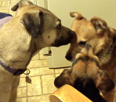 The reason I think that Zani’s sniffing/nosing behavior was saying, “Go away” to Summer, is that I have seen it perform that function dozens of times. The usual behavior analysis goes like this: