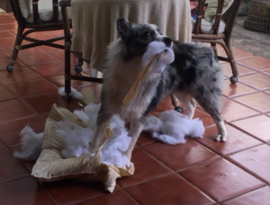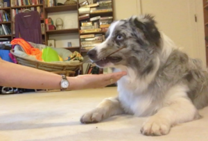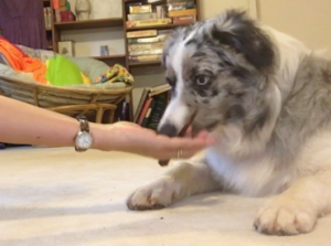 Cues such as “leave it,” “move away,” “retrieve,” “hand touch,” and “stay” are very helpful so I began with training these. I wanted to start by rewiring Bix’s mind so he views cooperation as beneficial rather than feeling the need to foster an adversarial stance. To set him up for success, then, he should not encounter any possibility to fail, for example stealing something of mine to chew (and guard). That means proofing my house and making sure that he can do no wrong while I am out.