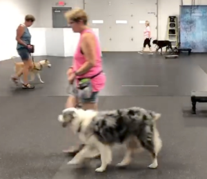 Another client, Susan, has a dog reactive pit bull named Wanda. Wanda has made wonderful progress in training class but is still reactive. This dog is a door dasher without, yet, good recall.