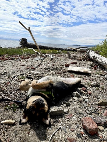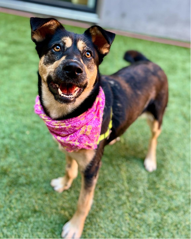 Daisy (whose shelter name was Nancy) was the type of young adult shelter dog that made me melt. She was a smarty-pants shepherd mix with a winning smile, a love of training and toys, and one of the certifiably softest coats one might ever touch. The San Francisco Animal Care and Control (SFACC) shelter thought she might be a kelpie mix based on her appearance and behavior, but as those of us well-versed in the accuracy of pinpointing breed mixes on visual identification alone can probably guess, she wasn’t. Daisy had come in as a stray and no one claimed her, so once her hold was up, the first order of business was an assessment from one of our behavior staff. During her assessment, Daisy showed us that she loved food, stuffies, people, play, puzzles, cuddling, and other dogs. But, uhm … about that last thing. Daisy loved other dogs a little too much. Her dog-dog test revealed she was prosocial and highly interested in spending time with members of her own species. Great, right? Such a winner of a dog should have no trouble getting adopted!