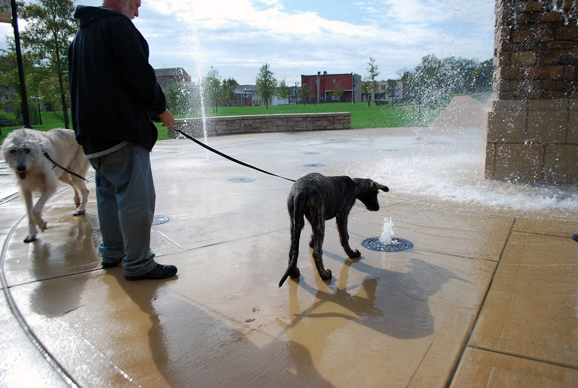 I had a year to plan extensive details for her socialization while waiting on my breeder’s list for Oona’s litter to be born. I’m certainly no pro at it. It wasn’t until I got my first wolfhound, Finn, that it sunk in how critical proper socialization is. The body of canine research is growing and passing on to the public in torrents these days. But seven years ago I just knew socialization was something I needed to do with Finn, along with puppy training and taking care that a crazy wolfhound puppy didn’t pull me off the porch. Again. I knew it was critical that Finn be exposed to a checklist of sights and sounds so he could grow his social “muscles” and be ready to cope with the crazy human world without fear. Fear from bad first experiences leads to a host of troubles that are easily avoidable if you simply get your puppy out and give her positive first encounters.