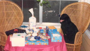 My wife and I were socially active in our youth and we had a wide circle of friends, many of whom visited our home for backyard parties, friendly visits, and puppy birthday parties. We hosted volleyball games in which Samantha got to engage with the players and chase the ball, and football games in which she often grabbed the ball and ran off, only to be tackled by one of our guests.