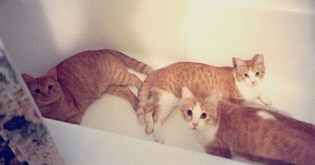 Alex in the foreground, with Rusty and Andrew behind him—photo from 1993. Yes, they are in a bathtub.