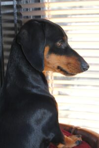 This family had had a miniature dachshund for 14 years but who had passed away in 2011. Apparently this dachshund had been aggressive towards other people and other dogs for its entire life. They had tried training but disagreed with the techniques recommended. The trainers they hired had all used corrective methods, which only made the dog worse. They stopped all training and put the dog in a separate area when company came over. The family were adamant that they did not want to endure another 14 years of a dog who could not be part of their family when guests were in the home, because they liked to invite people over as well as socialize regularly outside and take their dog with them. They were heartbroken and unsure as to how to proceed with Dickens.