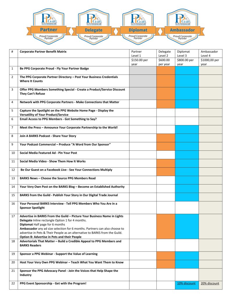 Since 2012, the Pet Professional Guild has worked earnestly to develop a dynamic network of devoted, competent industry professionals with a collective goal of revising the relationship between companion animals and their guardians through a new lens of understanding. As a Corporate Partner who supports our Guiding Principles, you will find our membership very responsive to your products and services.