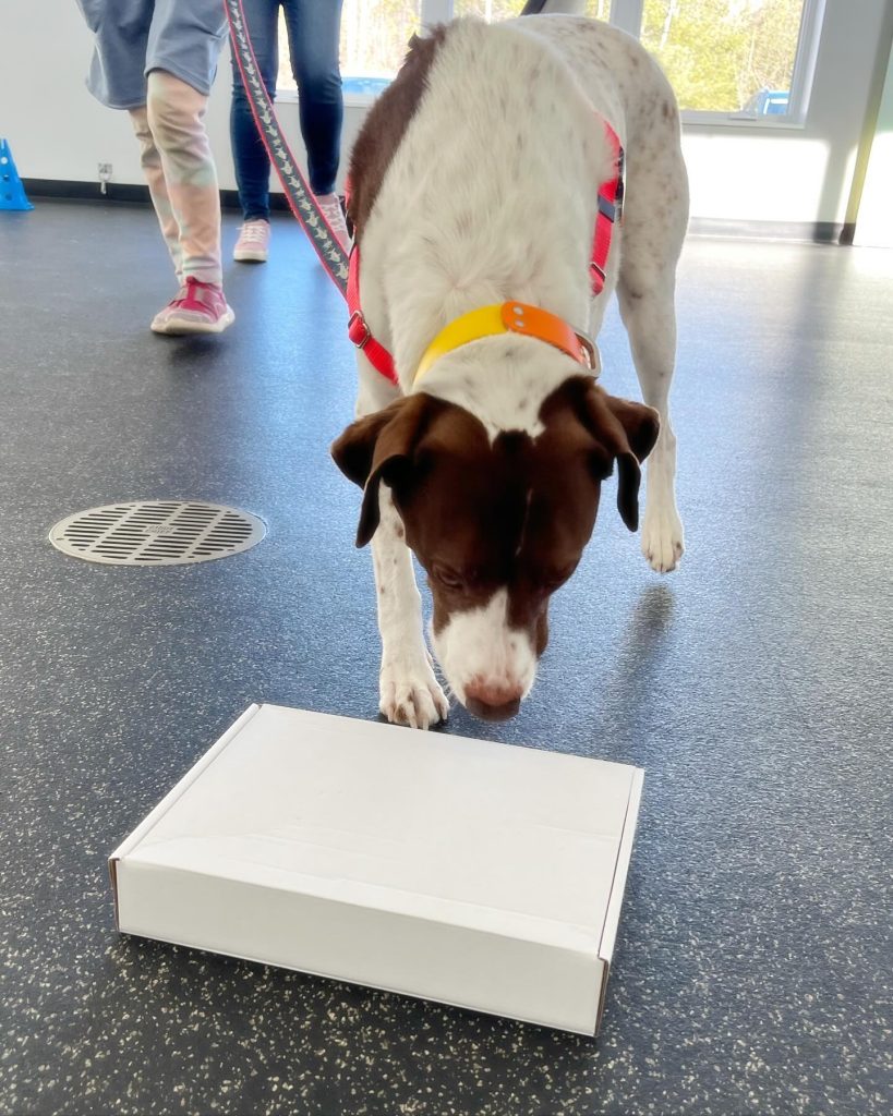In April of 2023, researchers at Texas Tech and Virginia Tech teamed up to run a proof-of-concept study – could pet dogs around the U.S. be trained to find one of the most environmentally damaging invasive species, the spotted lanternfly (SLF)? SLF is presently in 18 states, including New York and Massachusetts, and leaves the environment looking like “scorched earth without the fire.” It’s predicted to be in Maine by 2026, if not sooner. Melissa McCue-McGrath, a dog trainer and behavior consultant at the Animal Welfare Society in Kennebunk, Maine, initially thought they would not be picked to participate in the study after applying in April, 2023. But, in November, she received an email with unexpected news. The researchers were looking for a second cohort of dogs and trainers to complete the study that winter. Six pet dogs enrolled in McCue-McGrath’s scent work classes at the Animal Welfare Society in Kennebunk were tapped to represent Vacationland in the study. They were already trained to find a variety of oils on a Q-tip for fun, pivoted their focus to save the environment. The teams were shipped dead SLF eggs, packed them in a Pokemon lunchbox,, and got to work.